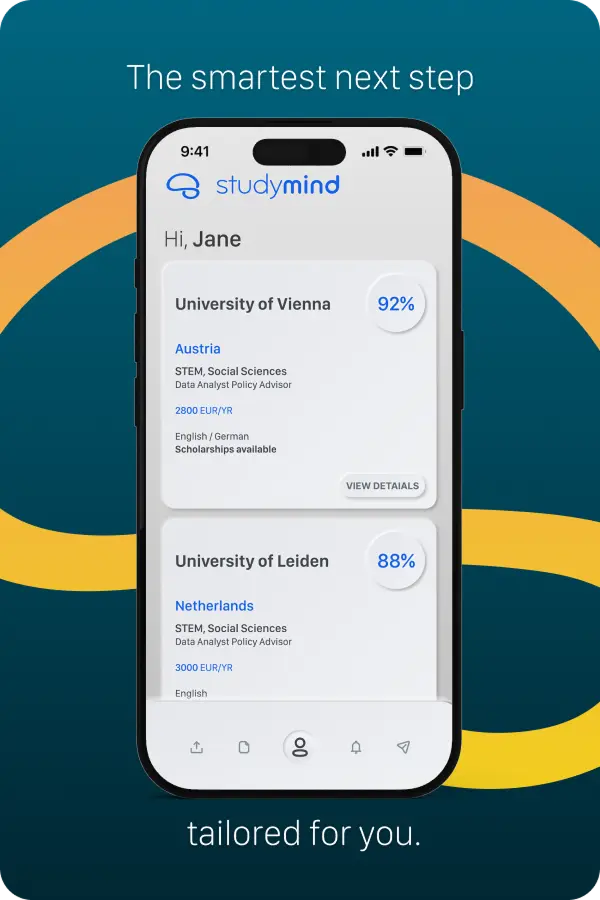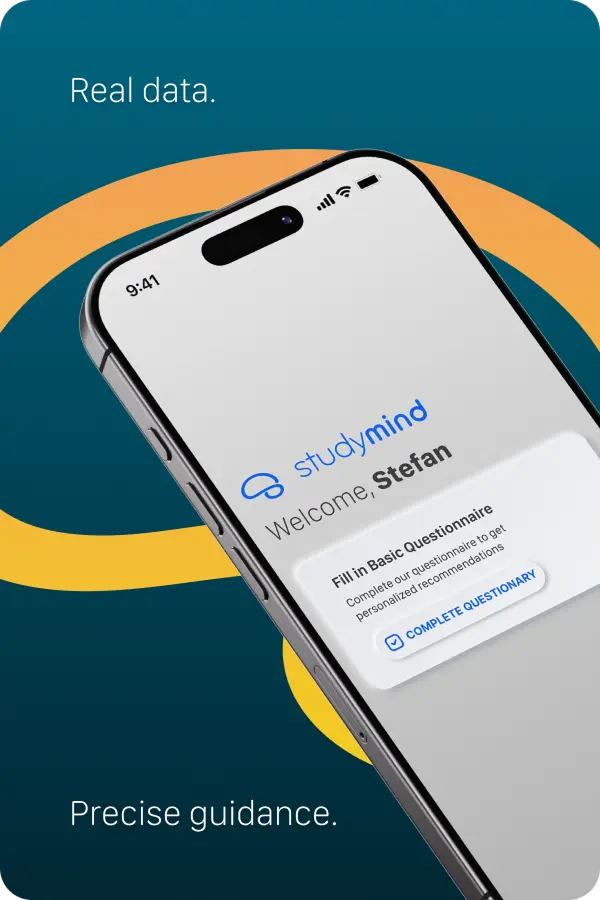 StudyMind هي منصة رقمية مصممة لمساعدة طلاب المدارس الثانوية وعائلاتهم على التعامل مع أحد أكثر القرارات المعقدة التي يواجهونها – اختيار مكان الدراسة وماذا يدرسون. تركز المنصة على منطقة التعليم العالي الأوروبية (EHEA)، وتستخدم المنصة التقييم النفسي والذكاء الاصطناعي لتقديم توصيات جامعية مخصصة بناءً على الملف الشخصي الحقيقي للطالب، وليس التخمين