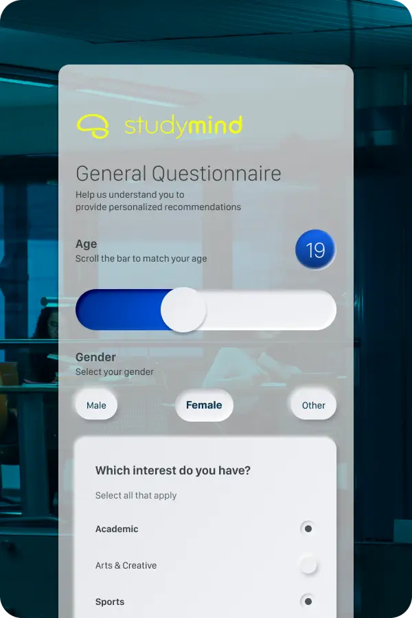 تقدم StudyMind ما هو أكثر من مجرد توصيات — فهي بمثابة رفيق داعم في واحد من أكبر القرارات الحياتية، حيث توجه الطلاب وعائلاتهم بثقة لاكتشاف أفضل المسارات التعليمية، وتساعدهم على تنمية قدراتهم واستثمار فرصهم إلى أقصى حد